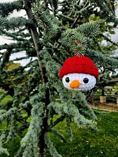 This quick and easy amigurumi project is perfect for beginners and seasoned crocheters alike. The finished snowman makes an adorable tree ornament, stocking stuffer, or cozy holiday gift.