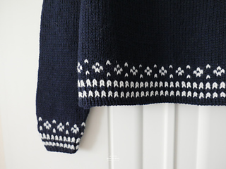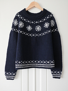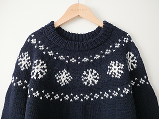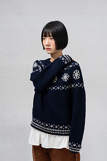 ‘Snowy Night Sweater’ is provided in 5 sizes, XS, S, M, L, XL and is designed to have approx 10-15 cm (4-6 inches) positive ease.