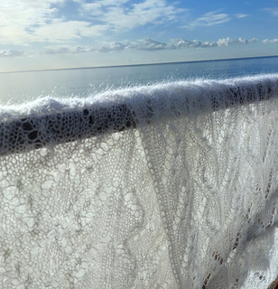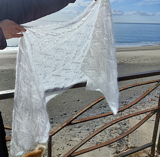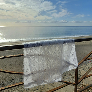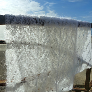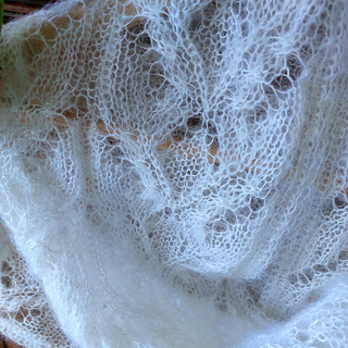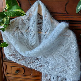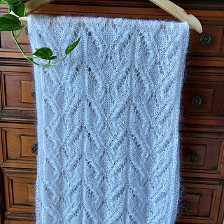 Knitted, begginer friendly scarf with Hobbii Friends Kid Silk and Lace stitch with 4 sts cables.