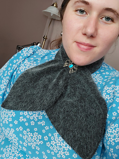 Pattern calls for four 1/2 ounce balls of Patons Fuzzy Wuzzy Angora, and 1 ounce of Patons Beehive Fingering 3-ply. Twenty glass buttons.