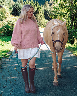 Snuggles Sweater is a quick-knit, chunky basic sweater. It is worked top-down with raglan increases. After the neckband, the neckline is shaped with short rows while increasing for the raglan. The rest of the sweater is knitted in the round in stockinette stitch with double ribbing on the edges. The sweater has a positive ease of approx. 15–25 cm, depending on how oversized you want it! Mama & Mini match? Check out Snuggles Sweater Mini <3