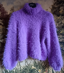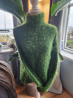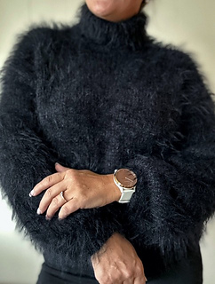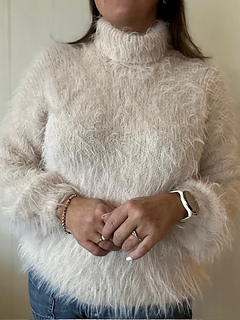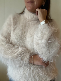 The sweater has a oversized fit approx. + 20 cm. It is worked top-down in stockinette stitch. First you knit the back piece, then you pick up the stitches for each front piece, which is worked separately. After that, all parts are joined onto the same needle. Stitches are picked up for the sleeves and neck.