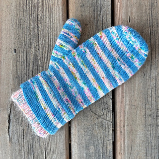 For my mittens I used Mary Margaret Fibres Fingering weight yarn in colours Peacock and Summer Lovin’. The lining was knit using Mary Margaret Fibres Suri Alpaca/Lace weight yarn in Watermelon Kisses.