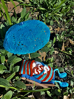 We still love the holidays, though. So I decided to design a fun SoCal flavored Gnome with playful colors and a beachy attitude. I chose Love Crafts’ “Paintbox Simply DK” for the yarn. I ordered several colors. As shown, the Gnome uses 6 colors, but can be simplified. It’s a soft acrylic, not stodgy; and it’s inexpensive. I plan on making other Gnomes in different colors and of course, you can always use the lovely traditional red, white, and green.
