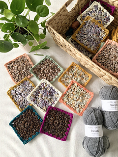 • video tutorials for the granny square as well as the continuous join as you go method.