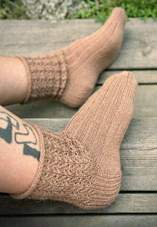 Beskrivningen är väl genomarbetad och finns i fem storlekar (35–42) med tydliga instruktioner, tabeller och diagram. Jag själv stickar fast, men sockan är konstruerad så att den passar fint även om din stickfasthet blir något lösare.