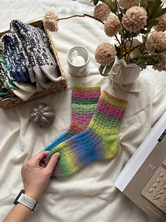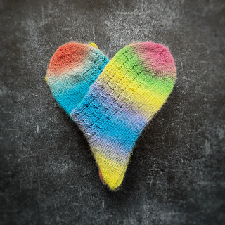 A fun and easy-to-knit sock pattern that works with any yarn, especially variegated or striped skeins. This is not an exact, calculated pattern—it’s more of a recipe/plan for knitting colourful socks your way.