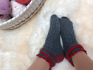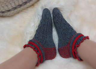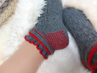 Skills required: basic knitting, decrease, increase, basic sock skills, short rows, heel flap, gusset, turning the heel, short row toe, Kitchener stitch.