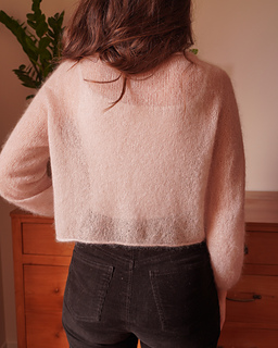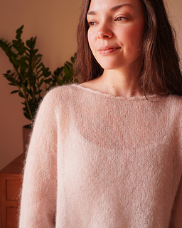 The pink sample is worked in one strand of Knitting for Olive Soft Silk Mohair (70% mohair, 30% mulberry silk; 225 m / 246 yds – 25 g) in the Powder colorway.