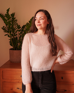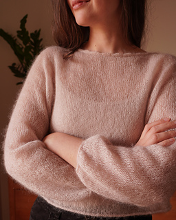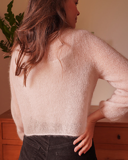 The Soffio Blouse is designed to be worn as a light transitional piece; a breath of fresh air for your spring wardrobe. It can be worked using a single strand of lace-weight yarn resulting in a sheer fabric, or with a thicker yarn for more coverage.