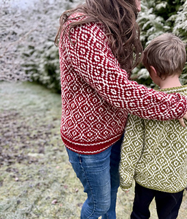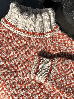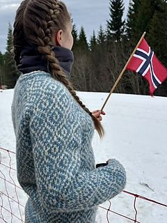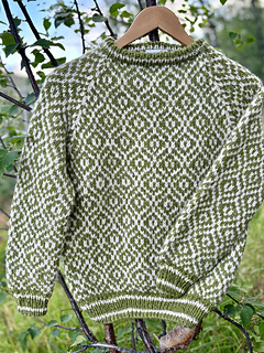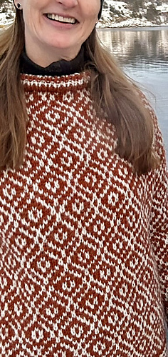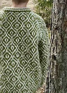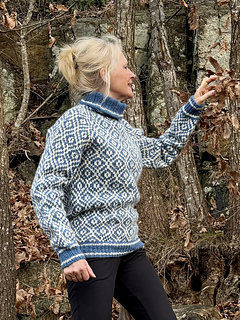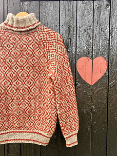 Sofie’s Winter Sweater is knitted in beautiful wool yarn with good elasticity and volume, and that makes it light, even if it is thick.