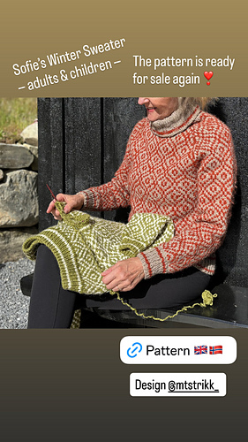 For purchases, please contact: marita@mtstrikk.no or you can by the pattern in my store mtstrikk Marita Thuve at strikkoteket.no .