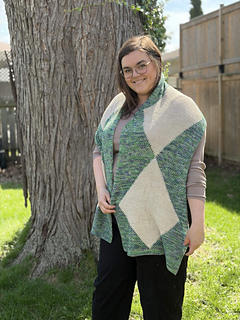 Soft Edges/ Diamond Core is a rectangular shawl that can also be worn more like a scarf. Wrap yourself up in a wonderful set of tactile stitch patterns in this drapey shawl. Worked from end to end, it’s a great first intarsia project for any knitter comfortable with knits, purls, and working with a simple chart. The pattern includes a lot of tips and tricks, and a couple pep talks to get you through the process.