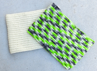 The cowl is crocheted in the round using the linked double crochet stitch (Ldc)