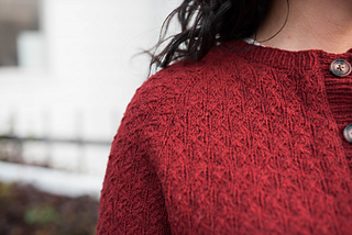 You’ll cut the cardigan open (yes! We are steeking!), then pick up and knit the button bands, and the collar for the v-neck. An engaging project from start to finish, and you’ll have a lovely, elegant wardrobe staple at the end.