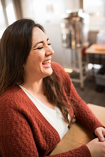 Sample 1: Size 4 crewneck modeled on 40”/100cm bust with 4”/10cm positive ease, Pénélope in colorway Crème