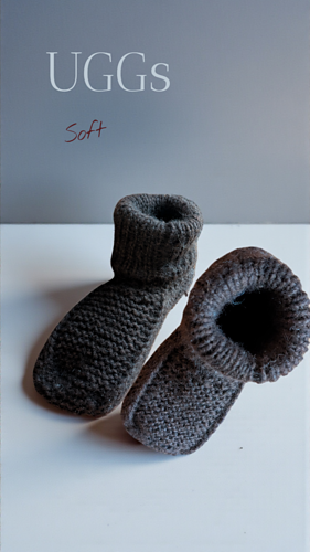 Soft UGGs is a slightly different ragsock or slipper. Sole can be sewn on underneath.