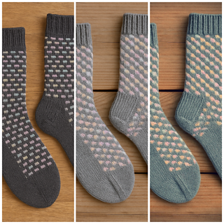 Soft and delicate colorwork socks that match the Soft Weave Beanie and Mittens. Light grey and pastel tones create a calm woven effect – cozy, soft, and easy to knit. ❤️ *