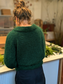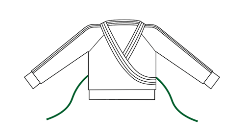 Soft wrap sweater with raglan sleeves and a sporty stripe on the sleeves. With a little experience, you can get started. With needles no. 5.