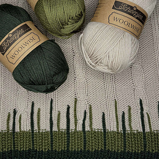 Worked in Scheepjes Woolwise DK, Solace combines durability with warmth and exceptional stitch definition. Vertical rib columns and subtle cables create a grounding rhythm, while optional hand-stitched embellishments in contrasting greens echo blades of grass and climbing moss.