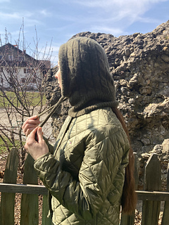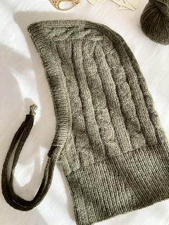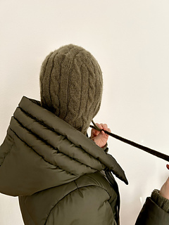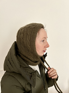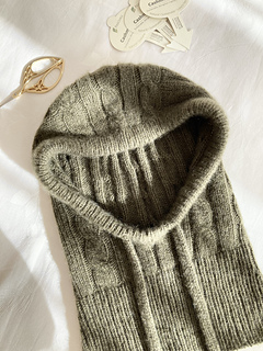 The Solène Hood is a classic balaclava featuring a timeless cable pattern. It is elegant, versatile, and a true wardrobe staple. Designed to keep both the head and neck warm, the delicate cables add a feminine touch and give the design a truly special character.