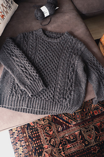 Solli Aran Sweater is designed around honeycomb cables as its main motif.