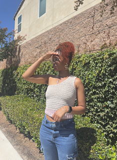 This is a made to measure pattern where you measure your own body to create this garment. Meaning there are no specific stitch counts or rows for this pattern to ensure that you are able to crochet the size that you’d prefer, and any yarn of your choosing!