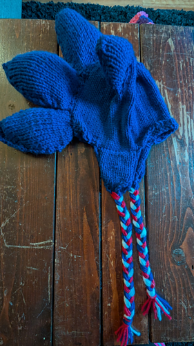 The pattern uses worsted-weight acrylic yarn, worked in the round, with simple shaping techniques and added flat-knit elements for the ears and spikes. Great for intermediate knitters or adventurous beginners looking to try new construction methods.