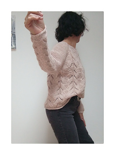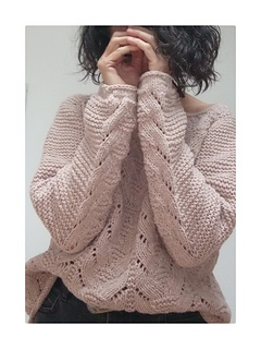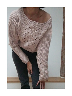 Le pull Sophie se tricote de haut en bas, en rond sur aiguille circulaire, sans couture. Après avoir fait l’empiècement raglan, on met les mailles des manches en attente et on joint le dos et le devant pour tricoter le corps jusqu’à la longueur souhaitée. Puis on relève les mailles pour tricoter les manches. Le motif est répété sous la manche.
