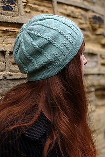 Delicate false cables adorn the body of this Hat, which comes in both slouchy and beret versions. The slouchy features a gentle gather crown; the beret features the same soft stitch pattern, reflecting that of the body.