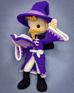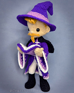 Your Sorcerer will be approx. 12 inches tall, when made with an F hook and worsted weight (4) yarn.