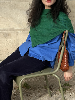 The Soufflé Poncho features the same stitch pattern as the Soufflé Bandana. While knitting the Soufflé Bandana in La Bien Aimée Alix, I was also working on a sample of Helsinki Volute. I fell in love with the texture of the stitches in Alix and with the shape of this simple, timeless poncho. That’s when I thought: I need to create a Soufflé Poncho.