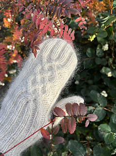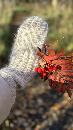 Depending on the yarn you choose the Space between mittens can be elegant for the city life or robust for playing outside in the winter. The whole mitten is worked in rib pattern with a beautiful cable motive on the back of the hand.