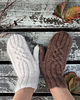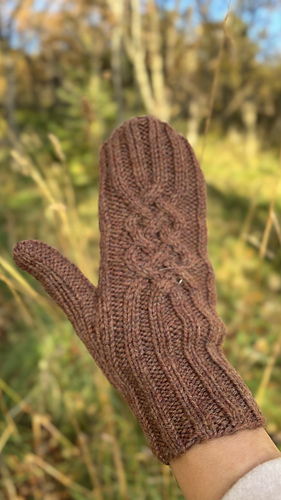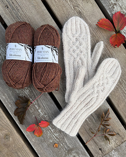 Brown mittens: 100g/200m Peruvian from Filcolana in the colour cinnamon.