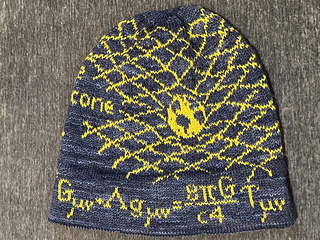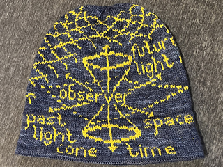 Spacetime, eller romtid-lua er strikket med motiver knyttet til Einsteins teorier om generell og spesiell relativitet, som kombinerer universets tre romdimensjoner med tidsdimensjonen.