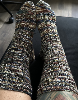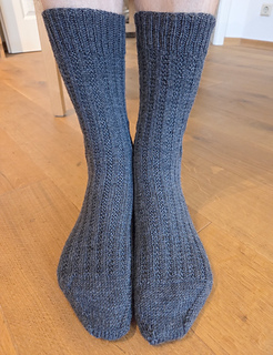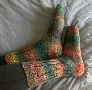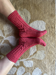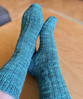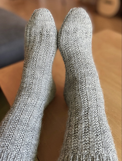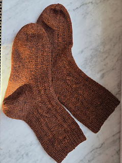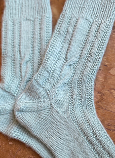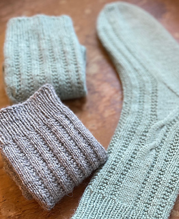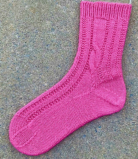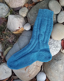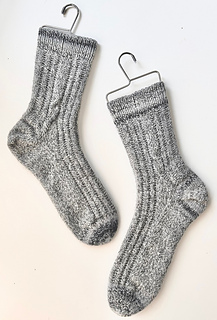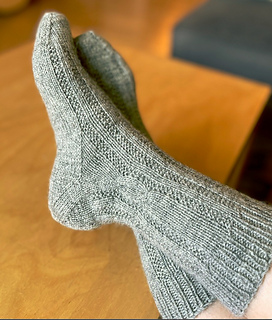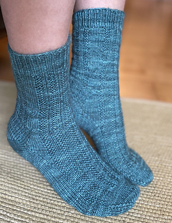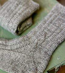 These old-school socks are worked top down in easy garter rib, with a touch of cabling to slightly taper the leg. Sport weight yarn makes them cozy and quick to knit.