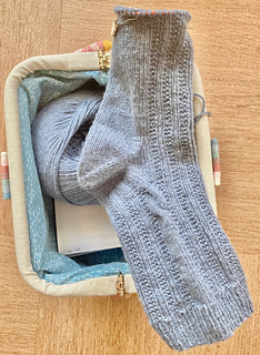 Novita Nalle Kivi (grey) and Bluenata (pale green) on 2.75 mm / US size 2 needles