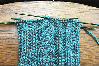 A full schematic, detailed illustrated instructions for how to construct the heel, and both written and charted instructions for cables are included.