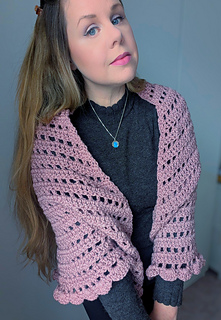 The Sparkly Vintage Shawl is very easy and beginner friendly, and features a very simple pattern. A lovely shell stitch edging is added once the cape has been made, as well as ribbons.