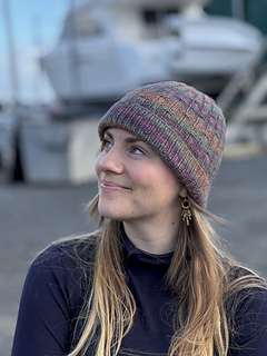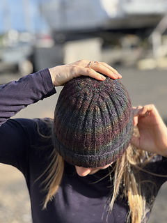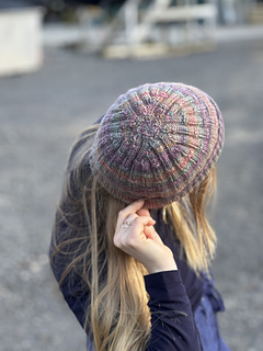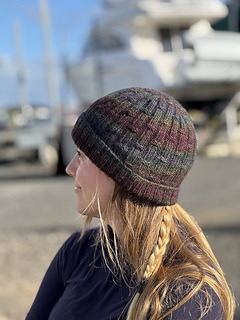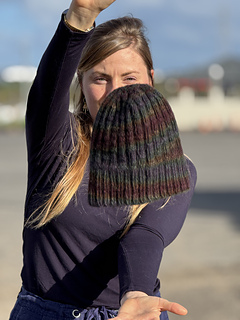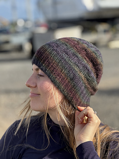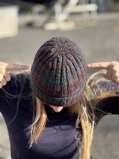 The Spectrolite Beanie is a textured beanie that uses a beautiful hand-dyed yarn to produce a rich dark colourful effect.