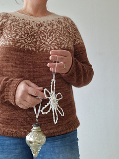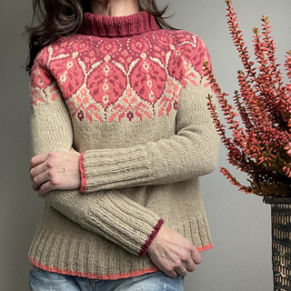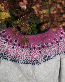 The Specullos Sweater is a top-down sweater with a pretty colourwork motif on the yoke.
