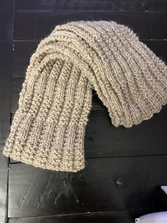 I used 4 1/2 oz. of aran weight yarn for the 4 1/2” x 70” scarf.