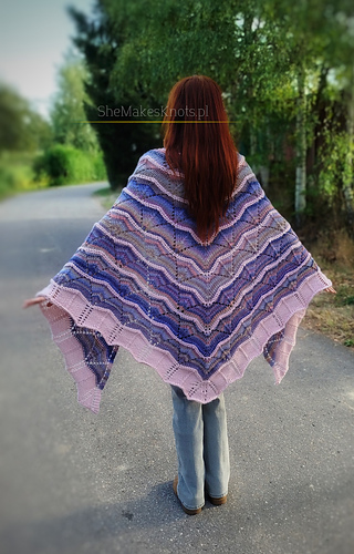 Along with the pattern, you will receive a file with ideas for the yarn as well as the yardage and full specifications of the test shawls. The shawl is designed in such a way that it gives you the freedom to choose the yarn (its type and weight) and the size of the shawl. To help with the decision-making process, I also included a few ready-made testers’ shawls, complete with specs.
