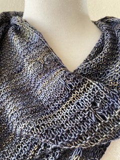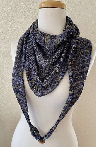 This long shallow triangle scarf measures 60”/1.5m long and 11”/29cm wide at its widest point.