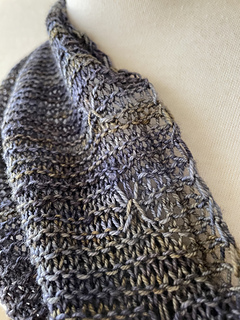 This little scarf is knit at a loose gauge and requires aggressive blocking to show off the spiderling motif, but if you do those things, this project is a fairly easy knit with a rewarding subtle weirdness to it.