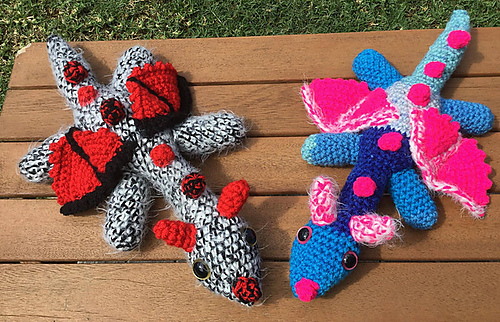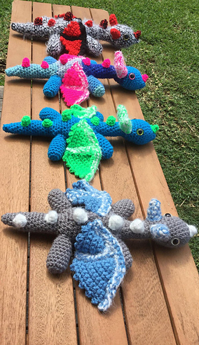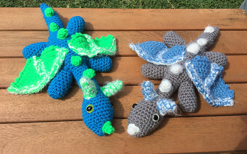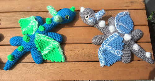 The body size is 34cm in length for the Aran weight I used for the Blue/Grey dragon & the Blue/Green dragon