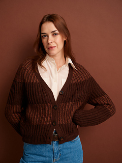 This relaxed cardigan by Simona Taraškevičiūtė (known as lowkey.bold.knit) is a satisfying knit that feels both cosy and put together. Wide stripes of two-colour brioche make it fly off the needles.