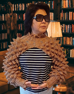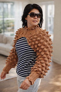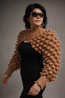 A bold bolero pullover featuring a striking spike-stitch pattern and long sleeves for a modern, statement-making look. The highly elastic stitch offers a comfortable, flattering fit for all body types,
