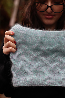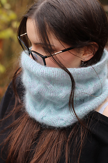 Born from a silky breath, Spiracule is a delicately crafted cowl, knitted in mohair held double for an airy softness. Its construction forms a light spiral, a continuous movement that wraps around the neck like a warm current of air in the heart of winter.