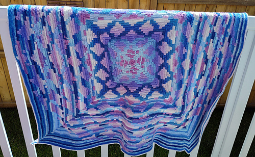 This design is available in both Interlocking Crochet and Mosaic Overlay crochet techniques. The Mosaic technique is written up to be worked either centre-out (worked in the round), or bottom-up (row by row), as such the download contains six files named appropriately to identify them.